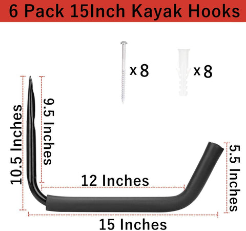 JUMBO ARM: Kayak rack length 15 inches, It holds a large item with a 13 inches or less width, can hanging kayak, canoe, SUP, snowboard, wakeboard, surfing board.