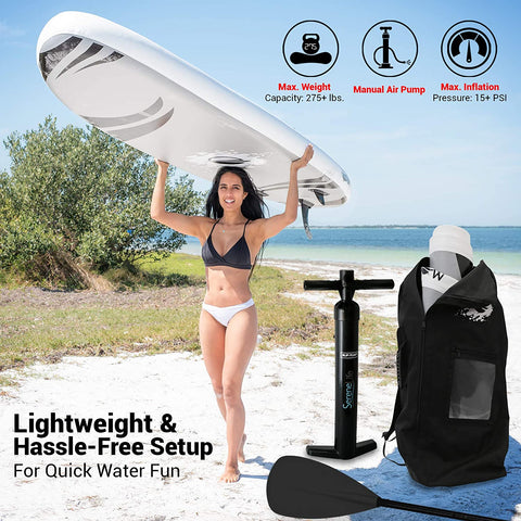 PORTABLE & INFLATABLE SUP BOARD: 100 percent travel friendly, this unique SUP inflatable paddle board is preferred by those who have a knack for adventure Take it with you on surfing excursions or keep it in your car for those times you want to explore.